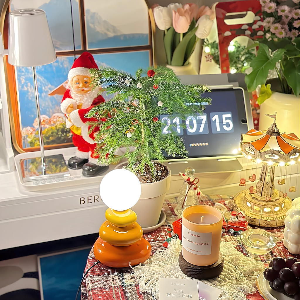 The Arvika Table Lamp blends Nordic warmth with artistic form, featuring a stacked-pebble ceramic base topped with a softly glowing orb. Its smooth, rounded silhouette brings a sense of calm and balance to any room—whether on a bedside table, reading nook, or cozy dining corner. With gentle, diffused illumination and a playful yet refined color palette, Arvika adds an inviting touch of modern elegance to your space.