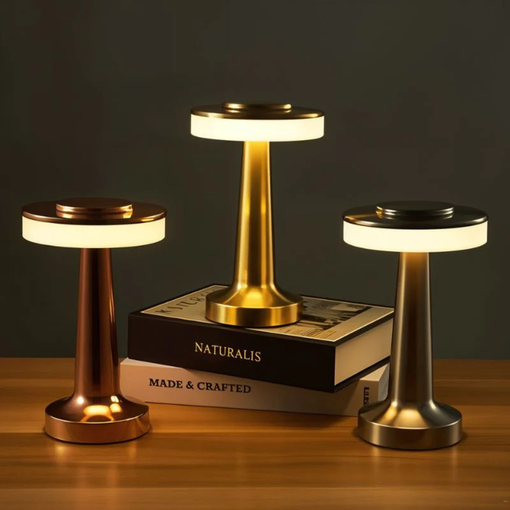 The Brill Table Lamp is a sleek, minimalist lighting piece crafted with a solid aluminum body and a softly diffused lampshade that glows evenly in all directions. Its rechargeable design, three color temperatures, and intuitive touch controls make it perfect for setting the mood—whether for dining, relaxing, studying, or late-night ambiance. Available in premium metallic finishes, Brill adds a warm, modern touch to any room or tabletop setting.