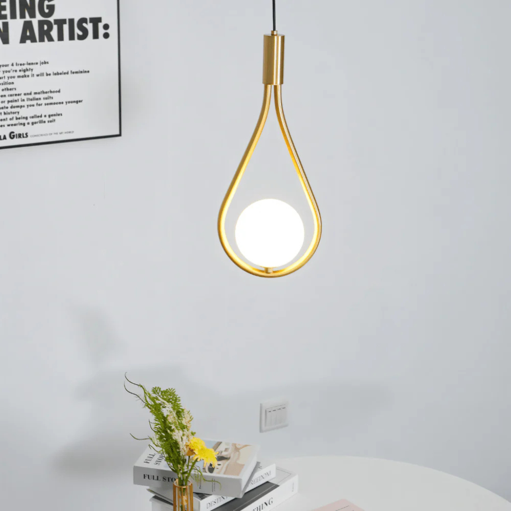 The Dewyn Pendant Light showcases a refined teardrop design crafted from premium copper with a minimalist glass shade. Its warm metallic finish and soft, diffused glow create an elegant focal point, perfect for modern and minimalist interiors.
