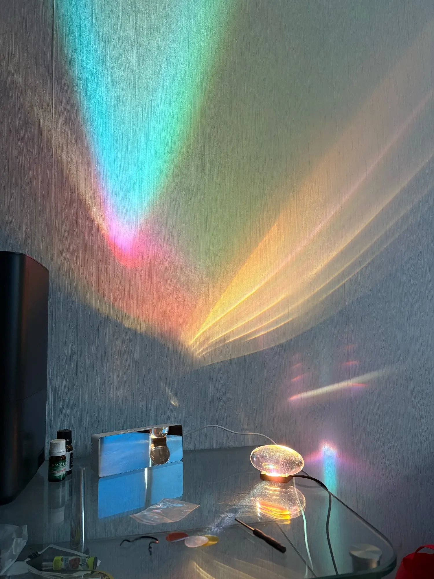 This GlintWave Table Lamp transforms any room with its unique elongated light beams, creating a soft, mesmerizing glow across your walls. Crafted from clear crystal with a refined metal base, it refracts light into elegant shapes and subtle gradients—bringing warmth, ambiance, and visual artistry into your home. Whether placed on a nightstand, shelf, or console, it doubles as both a decorative object and a captivating lighting feature.