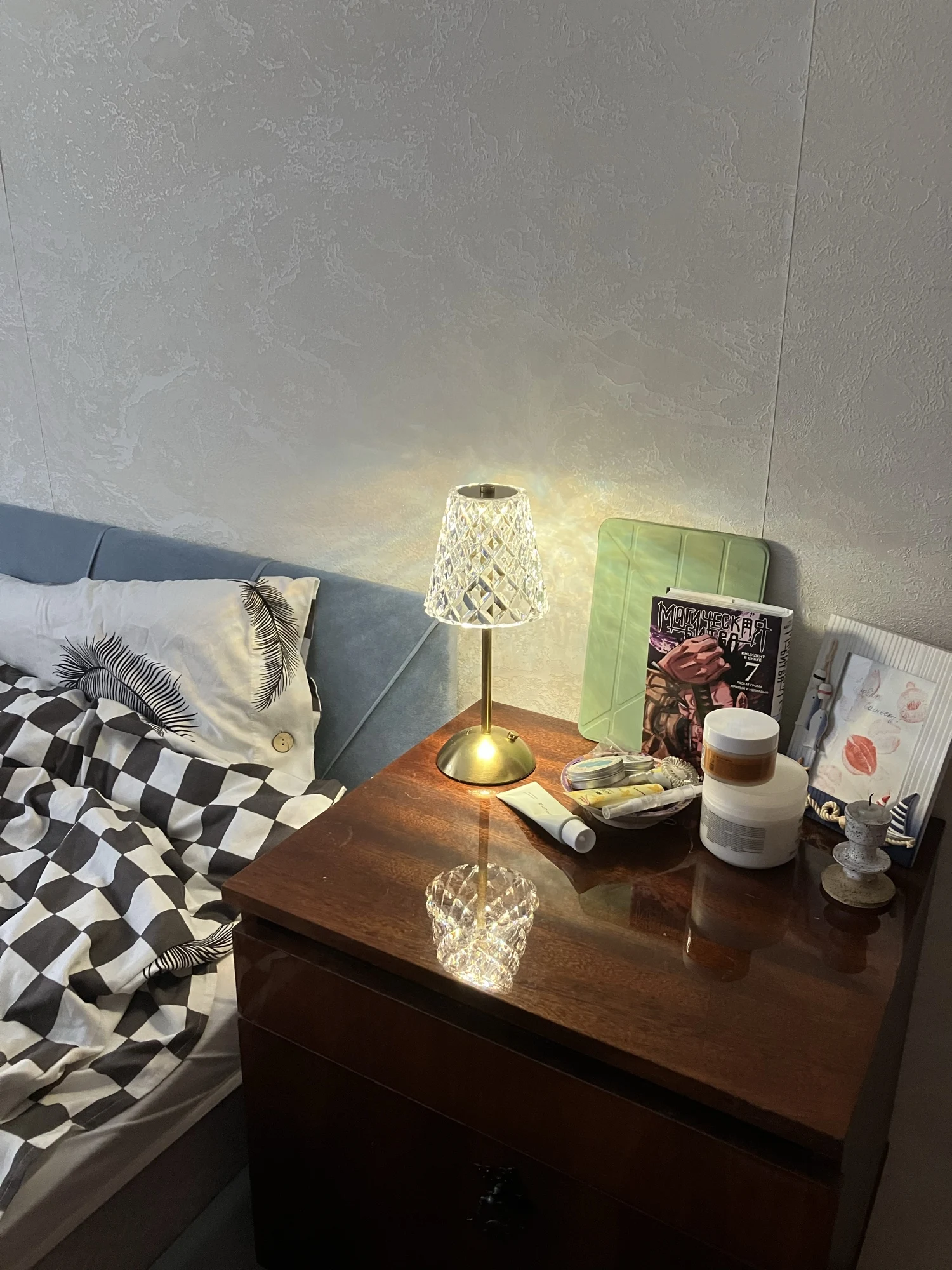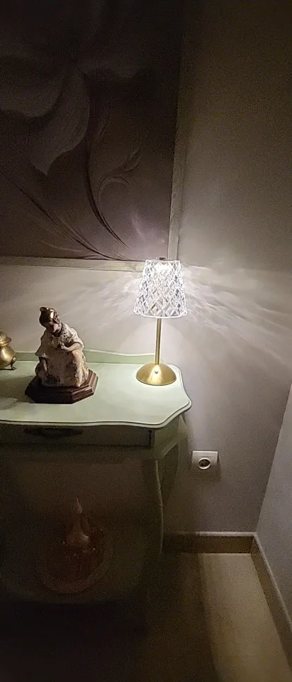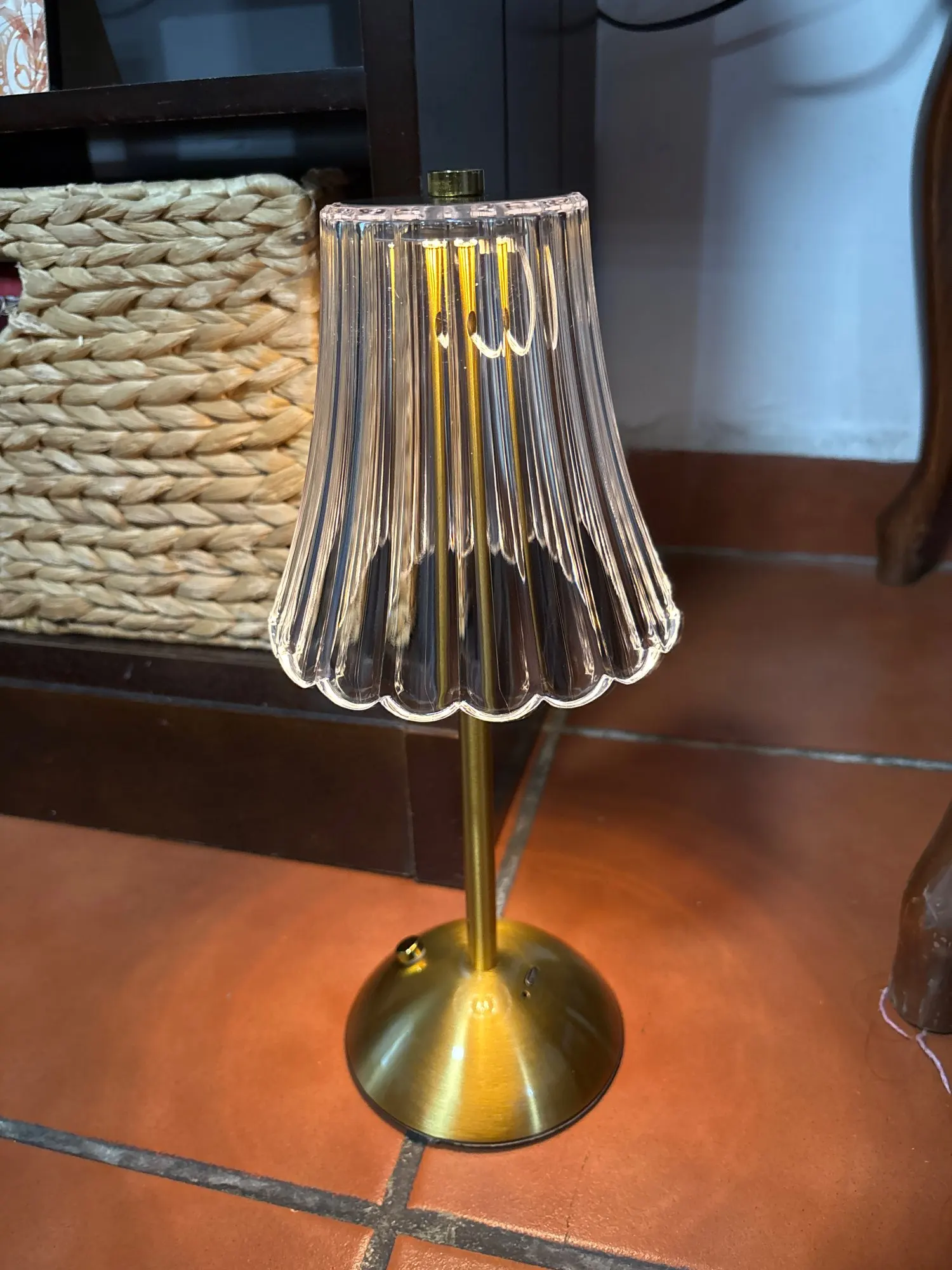 The Mira Table Lamp brings a refined balance of warmth and sophistication to any space. Featuring a transparent acrylic shade that mimics delicate glass and a smooth metallic gold body, Mira delivers a soft, ambient glow perfect for bedrooms, living rooms, and workspaces. With tri-color lighting options and a simple pushbutton control, this rechargeable lamp makes it effortless to set the mood—day or night.