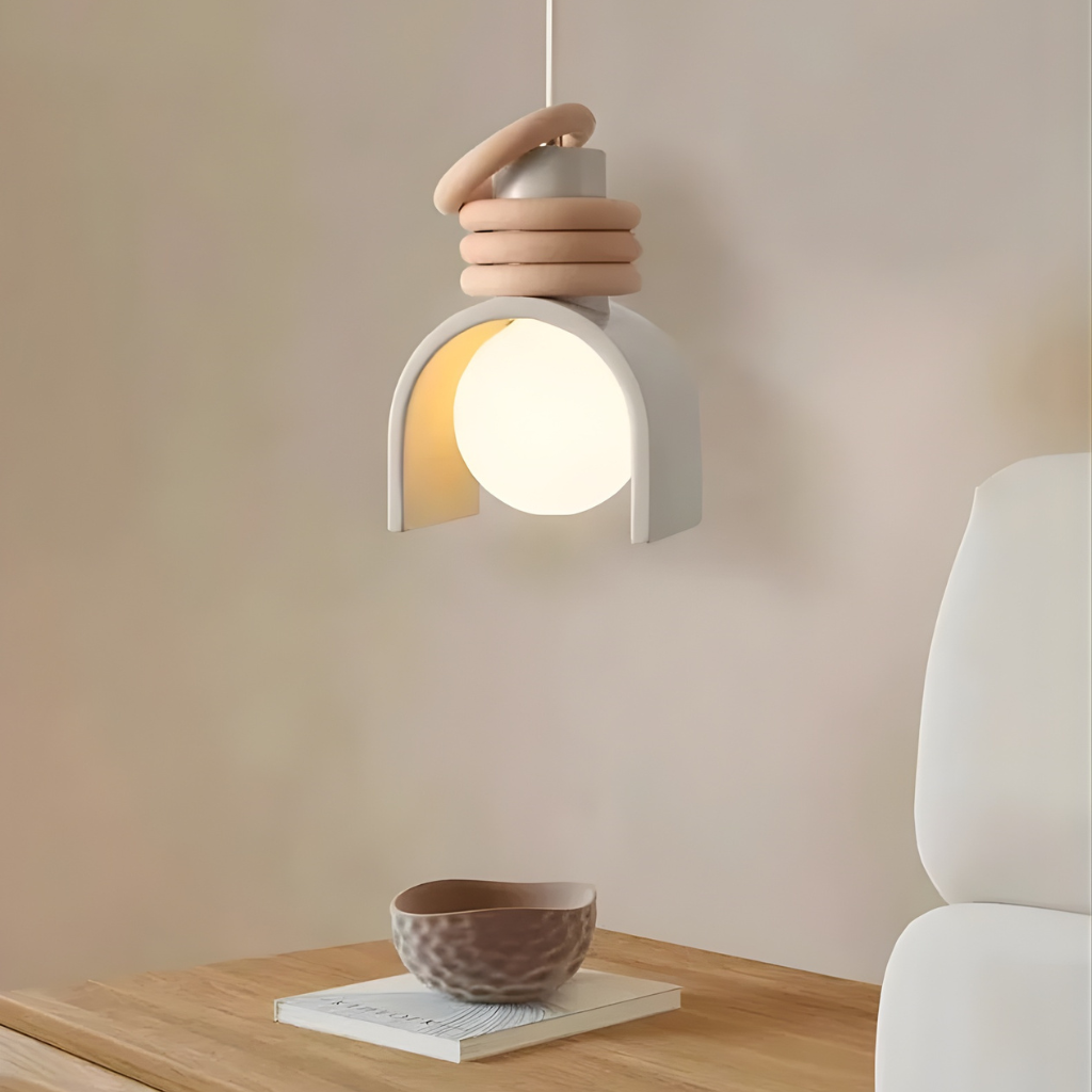 The Nolvi Pendant Light features a modern resin design with a dome-shaped shade that gently frames a glowing orb, creating soft, diffused light. Stacked curved accents add subtle texture, making it ideal for dining areas, living spaces, or bedside lighting. Its sculptural silhouette blends modern design with artistic elegance.