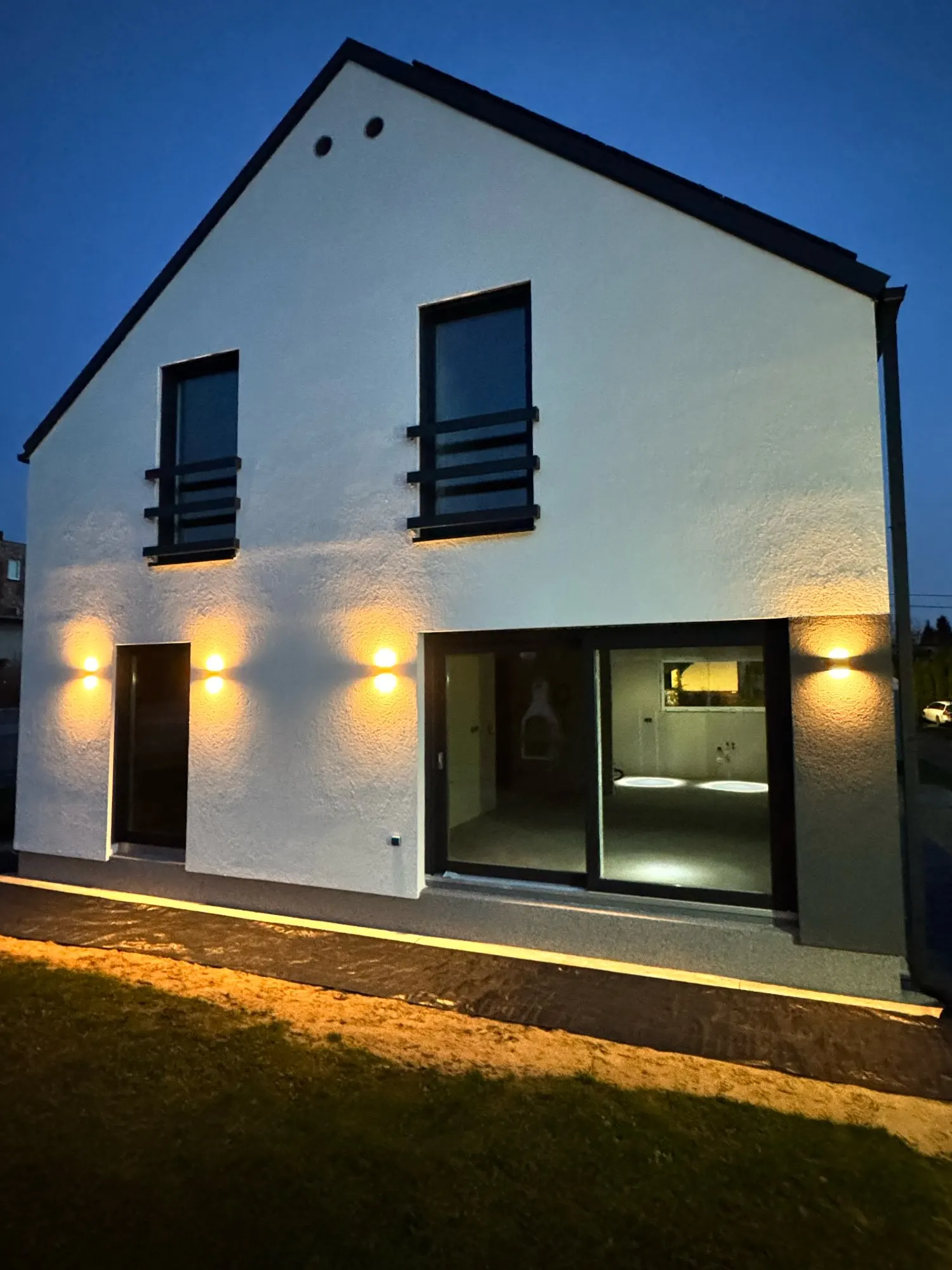 - Minimalist up-down glow adds warm, modern ambiance.