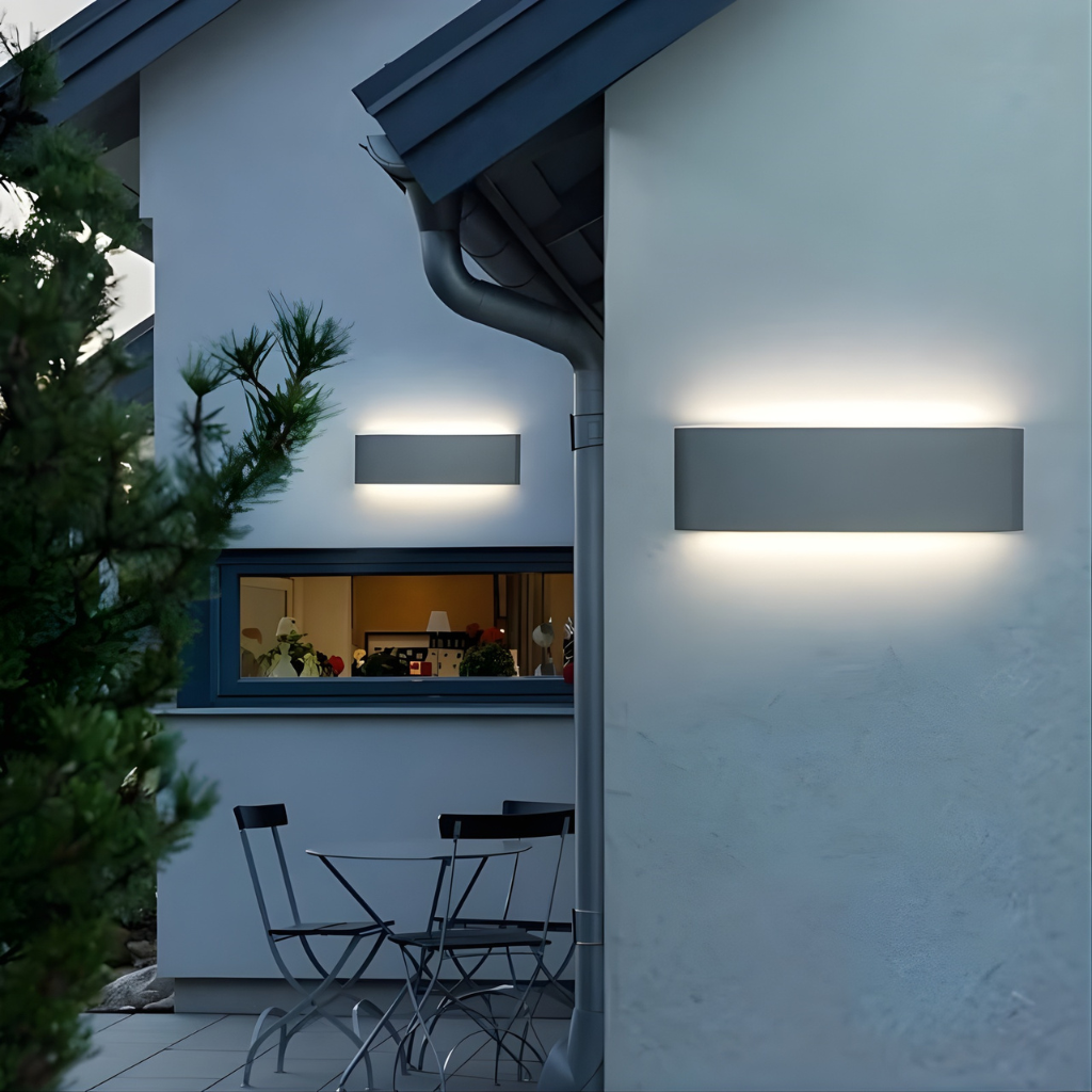 The Rexon Wall Lamp blends functional performance with refined modern design. Crafted from durable aluminum, it features a clean rectangular form with a smooth matte finish that complements any contemporary space. Its adaptable design works beautifully both indoors and outdoors, delivering a warm up-and-down glow that enhances the atmosphere of your surroundings. Whether you're aiming to create a cozy ambiance or elevate the character of your decor, the Rexon offers a sleek and reliable lighting solution.