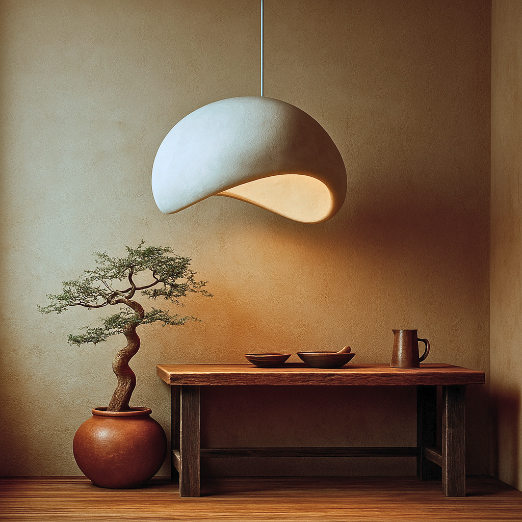 A refined fusion of Japanese minimalism and wabi-sabi aesthetics. Handcrafted from polystyrene, each Sorai lampshade showcases an organic, cloud-inspired form—subtle, distinctive, and effortlessly elegant.