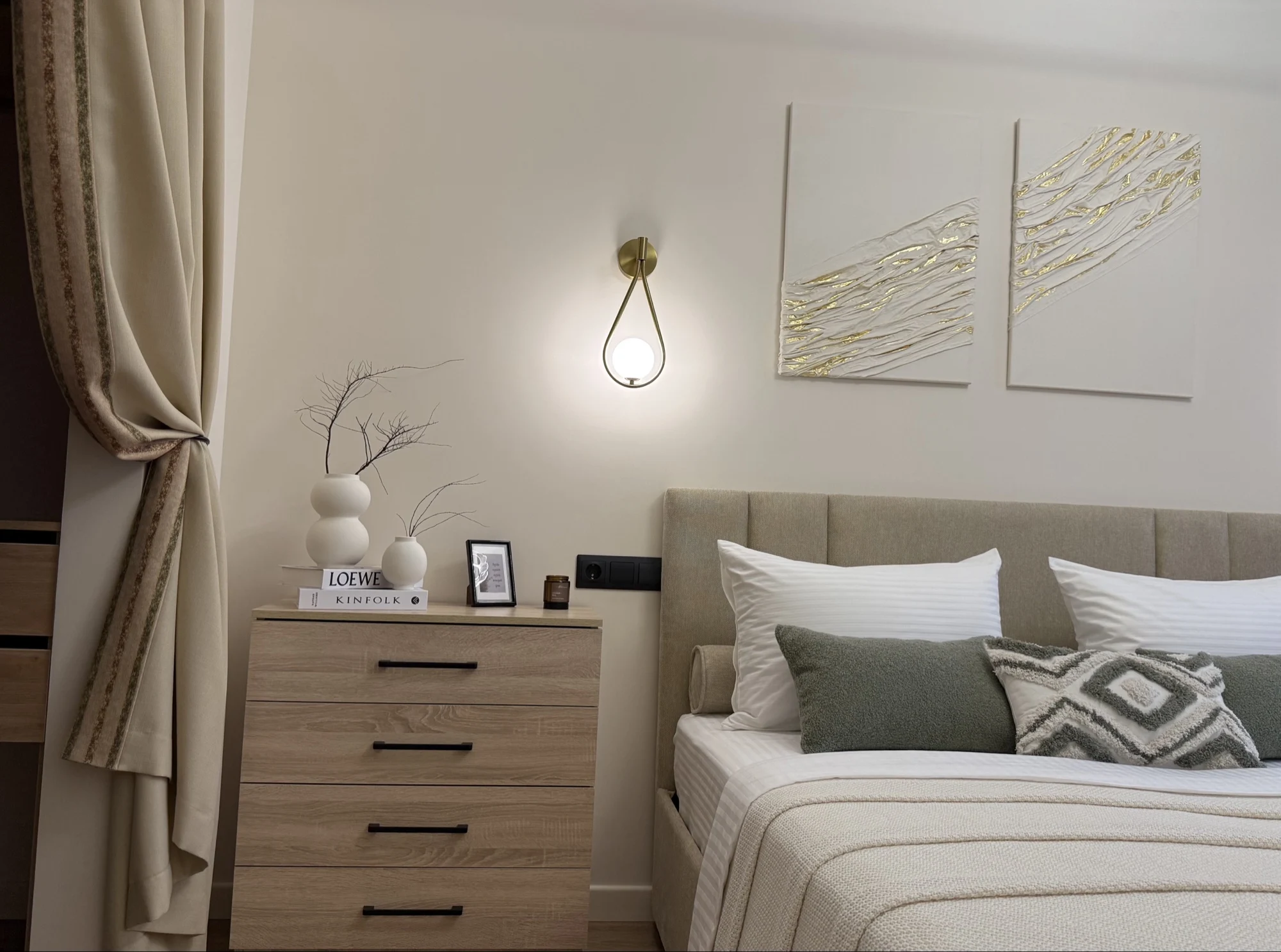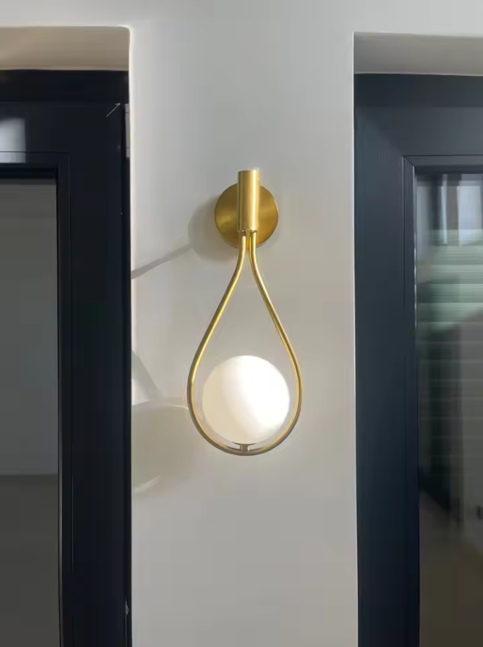 The Teara Wall Lamp features a refined minimalist silhouette that blends seamlessly into any interior. Its slender iron frame embraces a softly glowing opal glass sphere, casting a warm, ambient light that enhances the mood of your space. Perfect for modern living rooms, hallways, and bedrooms, Teara brings a distinctive touch of elegance with its brushed gold or midnight black finish.